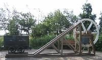 Lindsay Memorial, Kelty - Inscription reads: "On this site from 1873 to 1965 stood the Lindsay Colliery where on the 14th December 1957 nine men lost their lives in an underground explosion."