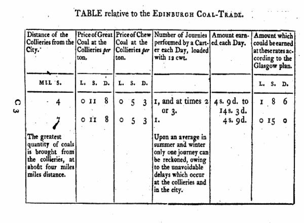 One circumstance respecting the price of coals in Edinburgh, is very remarkable; and it is surprising that no person, fully acquainted with all the facts connected with it, has made a thorough investigation of the matter; and it is this, - that the inhabitants of Glasgow have coals delivered at their houses at about one-half of the price paid by the inhabitants of Edinburgh; that is, they are in Glasgow 7 d., in Edinburgh they are i s. per cwt., and the Glasgow coals are allowed to be fully equal in quality, if not superior, to those in the vicinity of Edinburgh.