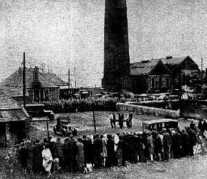 ![]() | Bodies Brought To Surface A great crowd of villagers, among whom were the relatives of the dead men, were waiting at the colliery. A storehouse near the pithead was used temporarily as a mortuary, and many of the women among the onlookers broke down as the stretchers bearing the dead men were carried from the pithead. |
