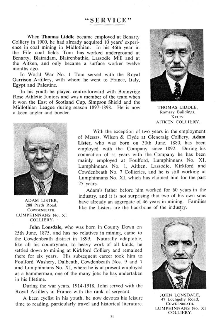 LONSDALE | JOHN | 47 Lochgelly Road, Cowdenbeath | Lumphinnans No XI Colliery | |