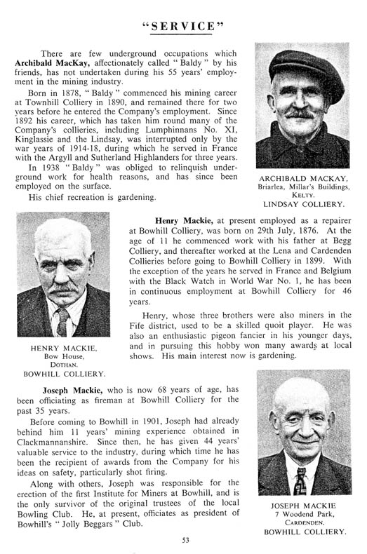 MACKAY | ARCHIBALD | Briarlea, Millar's Buildings, Kelty | Lindsay Colliery | Page 43 |