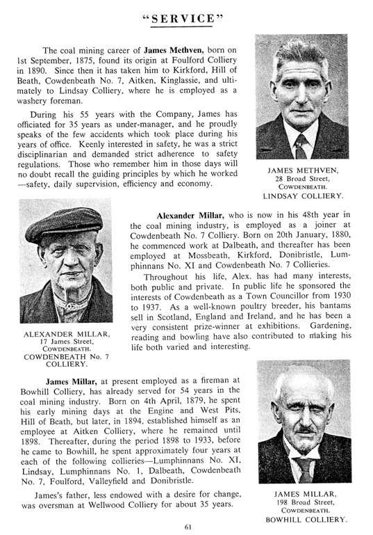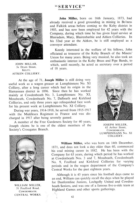 MILLER | JOSEPH | 65 Arthur Street, Cowdenbeath | Lumphinnans No XI Colliery | |